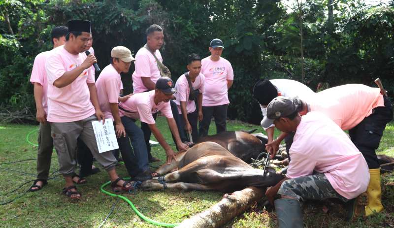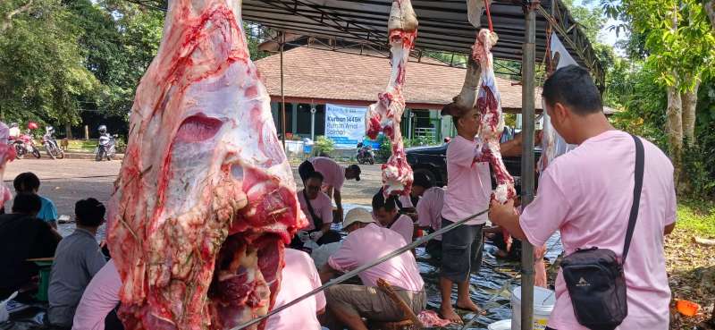 Kurban 1445 H di Universitas Bengkulu tahun ini berhasil menghimpun 8 ekor sapi dan 1 ekor kambing. Menariknya, satu sapi kurban tersebut merupakan sumbangan para peserta kurban yang dikelola oleh Rumah Amal Salman dan disalurkan melalui Asosiasi Masjid Kampus Indonesia (AMKI) Pusat. Rektor Universitas Bengkulu, Dr. Retno Agustina Ekaputri, S.E., M.Sc., menyambut baik penyaluran hewan kurban ini dan mengucapkan terima kasihnya. "Semoga hewan-hewan kurban ini dapat menjadi sarana ibadah, mendekatkan diri kita semua kepada Allah SWT," ungkap Rektor. Selain Rumah Amal Salman, dua sapi kurban lainnya juga berasal dari Bank Syariah Indonesia Wilayah Bengkulu dan dari Rumah Zakat program BPKH. Adapun lima sapi dan satu kambingĀ kurban lainnya dihimpun dari 29 peserta perorangan. Total Penerima manfaat dari kurban ini adalah 1200 penerima yang terdiri dari Masyarakat Umum, mahasiswa, pegawai non PNS dan Harian serta para penerima lainnya yg membutuhkan. Ketua Panitia Kurban dan Sholat iduladha, Prof. Candra Irawan, S.H., M.H juga mengucapkan terima kasih kepada para peserta kurban, "Jazakumullah khairan katsir atas kepercayaan Bapak dan Ibu peserta kurban untuk berbagi bersama hewan kurbannya di kampus tercinta, Universitas Bengkulu. InsyaAllah untuk tahun berikutnya penyelenggaraan kurban akan lebih baik lagi," harap Prof. Candra yang juga merupakan Wakil Rektor Bidang Kemahasiswaan. "Semoga Allah SWT menerima segala kurban kita dan memberikan keberkahan atas semua amal ibadah ini. Mohon maaf bila ada byk kekurangan dan kealfaan kami dalam melayani Bapak dan Ibu para jamaah sekalian, tutupnya. Secara terpisah Ketua AMKI Provinsi Bengkulu yang juga Ketua UPZ UNIB, Prof. Agustin Zarkani, S.P., M.Si juga menyampaikan hal yang senada. Beliau berharap semoga akan ada banyak keberkahan atas ibadah kurban ini serta sarana mendekatkan diri kepada sang khalik dan kepada sesama ummat manusia.
